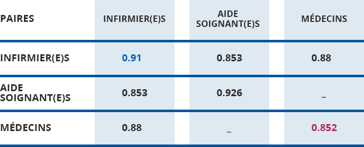 - – 5 types différents de paires de soignants ont été ainsi évalués (cf. tableau) :