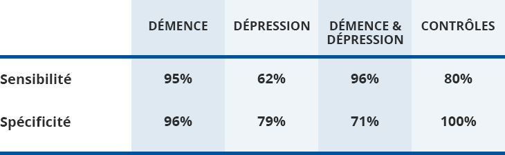 La dépression influence cependant négativement la cotation des items (seuls 2 items diffèrent significativement entre dépressifs douloureux et dépressifs non douloureux). La sensibilité de détection de la douleur est également affectée (cf. tableau).